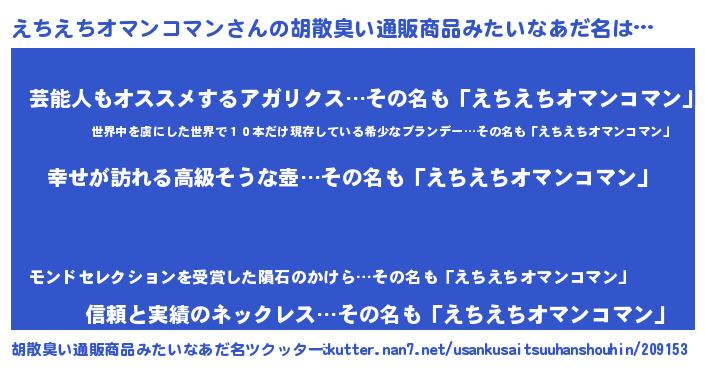 | 意味不明あだ名 | 『えちえちオマンコマンフォーエバー』 |