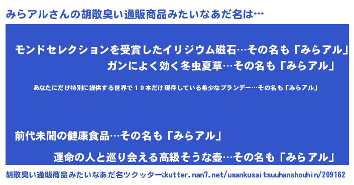 | 意味不明あだ名 | 『住所不定無職みらアル(77歳)』 |