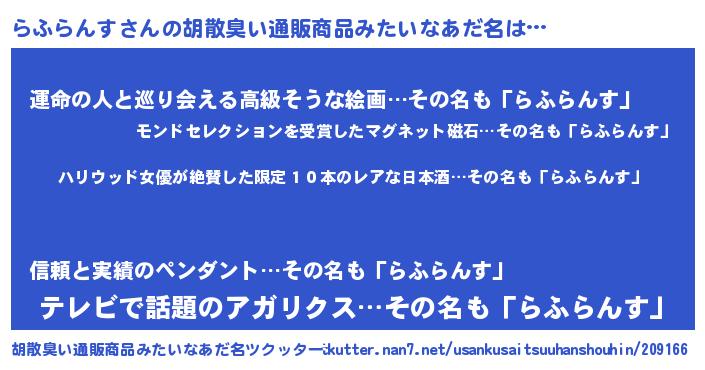 | 意味不明あだ名 | 『住所不定無職らふらんす(39歳)』 |