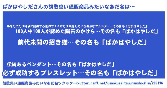 | 意味不明あだ名 | 『永久保存ばかはやしだ』 |