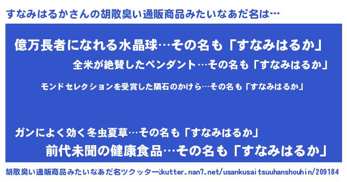 | ヘコむあだ名 | 『すなっふぃ~』『すなみはるか(笑)』 |