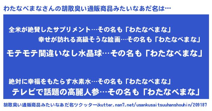 | ヘコむあだ名 | 『わたにゅー』『わたを』『豆乳』 |