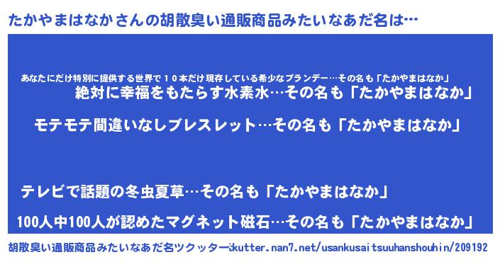 | ヘコむあだ名 | 『たかにー』『たかやまはなか(苦笑)』 |