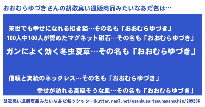 | ヘコむあだ名 | 『おおむらゆづき(遠い目)』『豆乳』 |