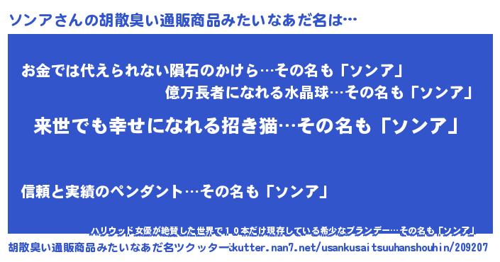 | 意味不明あだ名 | 『永久保存ソンア』『ペロリンソンア』 |