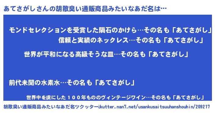 | ファンタジー風あだ名 | 『エターナルアテサガシー』 |
