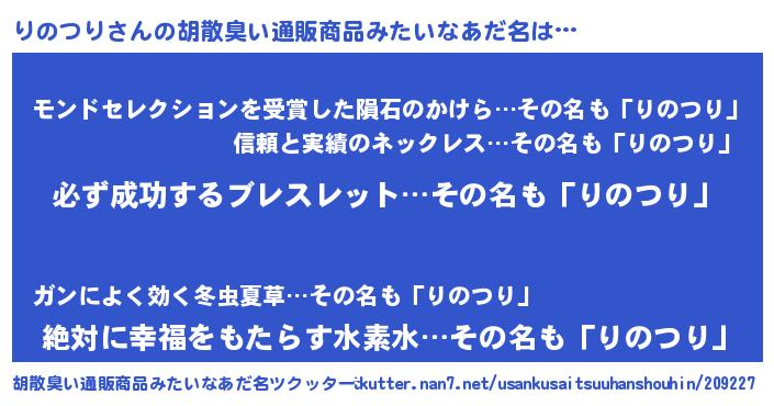 | ヘコむあだ名 | 『りのにー』『りのつり(小並感)』 |