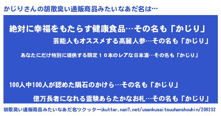 | 意味不明あだ名 | 『住所不定無職かじり(65歳)』『自称かじり』 |