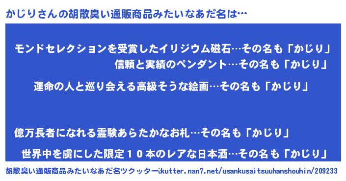 | 欧米人風あだ名 | 『かじりクリステル』『ダニエルかじり』 |