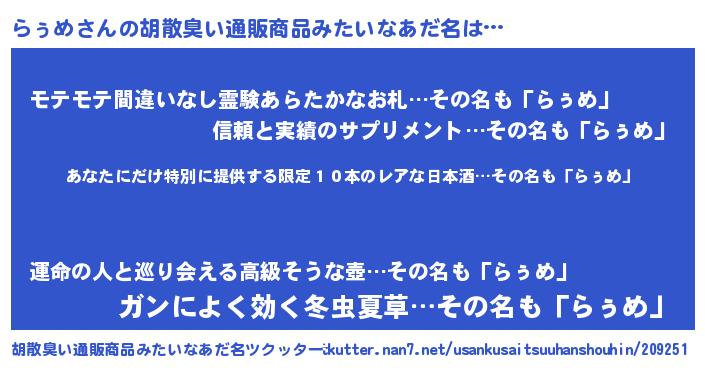 | 恥ずかしいあだ名 | 『プリティーらぅめ』『ラゥメデラックス』 |