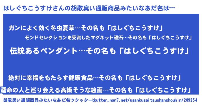 | 意味不明あだ名 | 『とにかく怪しいはしぐちこうすけ』 |