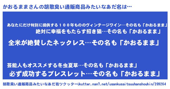 | 男性向けラノベタイトル風あだ名 | 『かおるままの嫁は女の子じゃないと思った?』 |