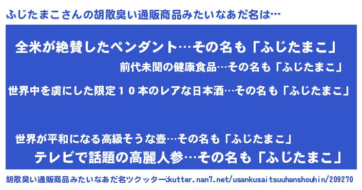 | 意味不明あだ名 | 『住所不定無職ふじたまこ(14歳)』 |