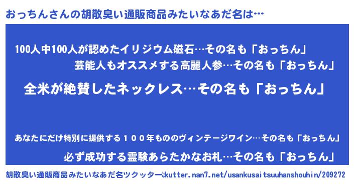 | 意味不明あだ名 | 『とにかく怪しいおっちん』 |
