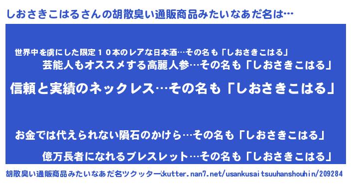 | 意味不明あだ名 | 『とにかく怪しいしおさきこはる』 |