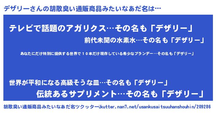 | 男性向けラノベタイトル風あだ名 | 『この素晴らしい世界にデザリーを!』 |