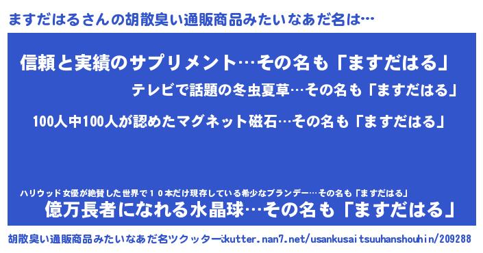 | ヘコむあだ名 | 『ますを』『ますふぇ~』『なまこ酢』 |
