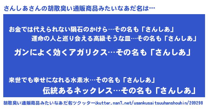 | ヘコむあだ名 | 『さん太郎』『牛乳』『さんしあ(笑)』 |
