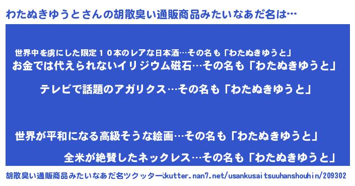 | 意味不明あだ名 | 『自称わたぬきゆうと』 |