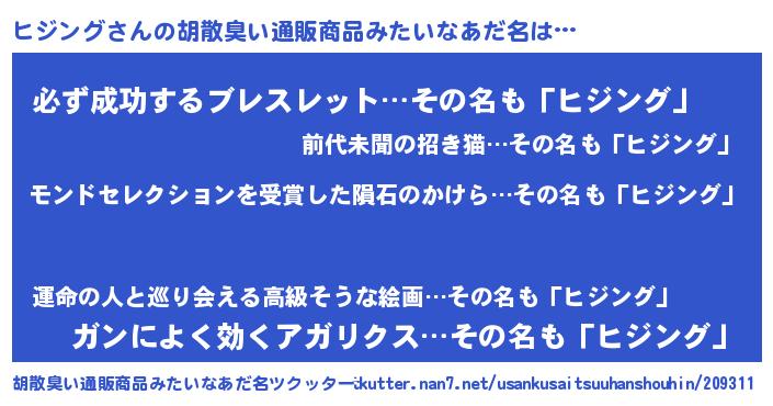 | ヒーロー風カッコイイあだ名 | 『慈愛の使者ヒジング』『ネオヒジング』 |