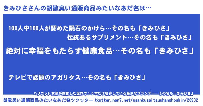 | 意味不明あだ名 | 『永久保存きみひさ』 |
