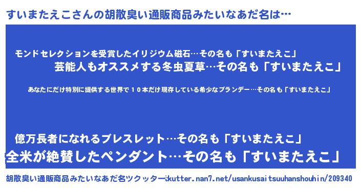 | 意味不明あだ名 | 『住所不定無職すいまたえこ(79歳)』 |