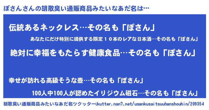 | ヘコむあだ名 | 『ぽさん(爆)』『ぽさお』『牛乳』 |