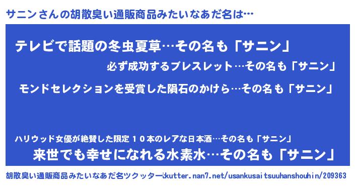 | 恥ずかしいあだ名 | 『ボンバーヘッドサニ』『サニちん』 |