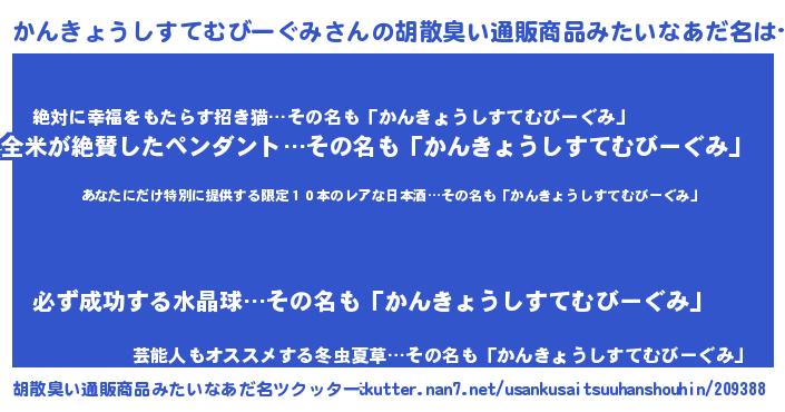 | 意味不明あだ名 | 『住所不定無職かんきょうしすてむびーぐみ(59歳)』 |