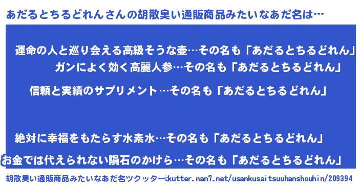 | 意味不明あだ名 | 『とにかく怪しいあだるとちるどれん』 |
