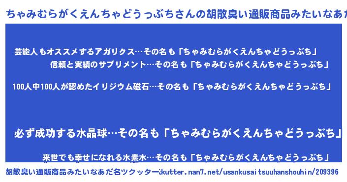 | 男性向けラノベタイトル風あだ名 | 『おまえをオタクにしてやるから、俺をちゃみむらがくえんちゃどうっぶちにしてくれ! 』 |