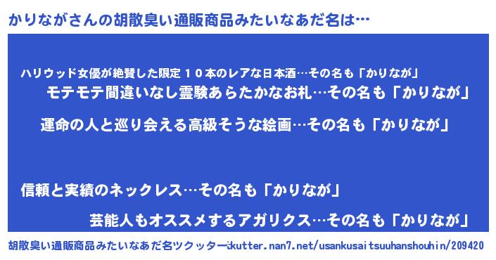| 意味不明あだ名 | 『かりながフォーエバー』『自称かりなが』 |