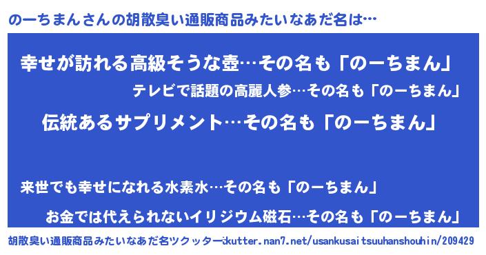 | 意味不明あだ名 | 『とにかく怪しいのーちまん』 |