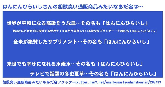 | ポケモン風あだ名 | 『ハンゴンZ』『ヒハンニンヒライシ』 |