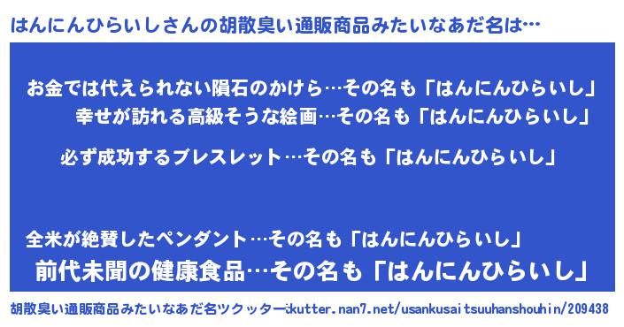 | ヘコむあだ名 | 『はんふぇ~』『はんにんひらいし(遠い目)』 |
