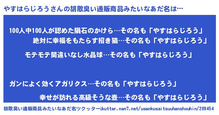 | ヒーロー風カッコイイあだ名 | 『スーパーヤスハラジロウ』 |