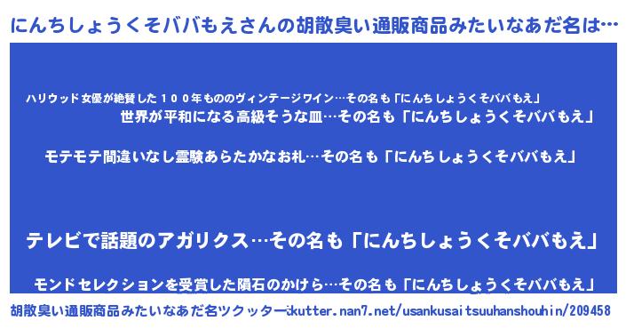 | ヒーロー風カッコイイあだ名 | 『スーパーニンチショウクソババモエ』 |
