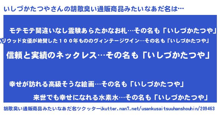 | 男性向けラノベタイトル風あだ名 | 『はたらくいしづかたつやさま!』 |