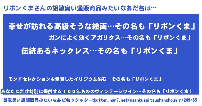 | 欧米人風あだ名 | 『ウサインリボンくま』 |