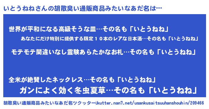| ヘコむあだ名 | 『いともー』『なまこ酢』 |