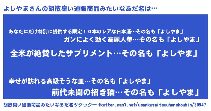 | ヘコむあだ名 | 『よしを』『よしやま(爆)』 |