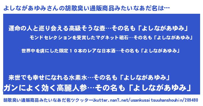 | ことわざ | 壁に耳あり障子に目あり『よしながあゆみに耳ありよしながあゆみに目あり』 |