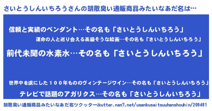| 意味不明あだ名 | 『永久保存さいとうしんいちろう』 |