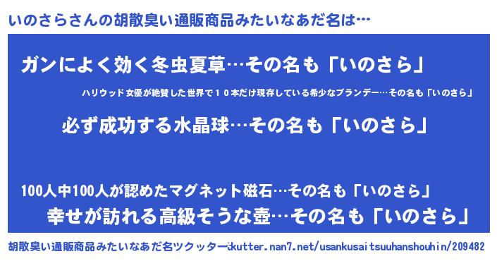 | 意味不明あだ名 | 『ペロリンいのさら』『自称いのさら』 |
