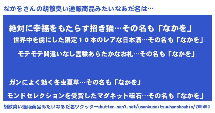 | 意味不明あだ名 | 『ペロリンなかを』『永久保存なかを』 |