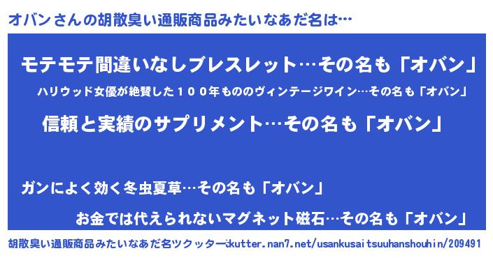 | 意味不明あだ名 | 『めかぶ科オバン属』『ペロリンオバン』 |