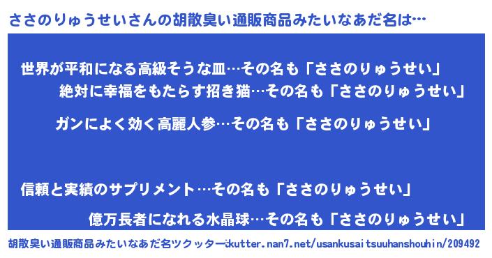 | 意味不明あだ名 | 『自称ささのりゅうせい』 |