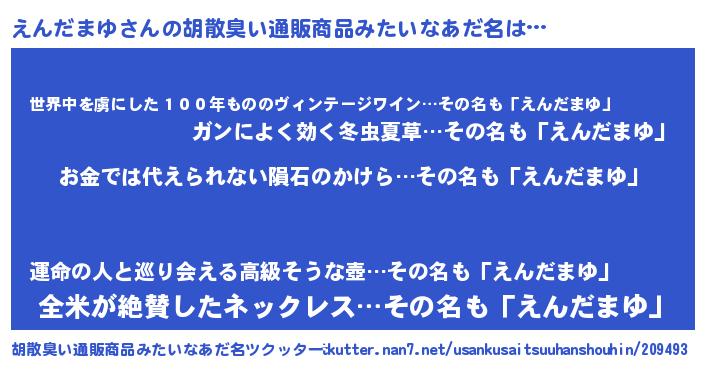 | 女子向けラノベタイトル風あだ名 | 『えんだまゆ恋絵巻』『闇のえんだまゆ』 |