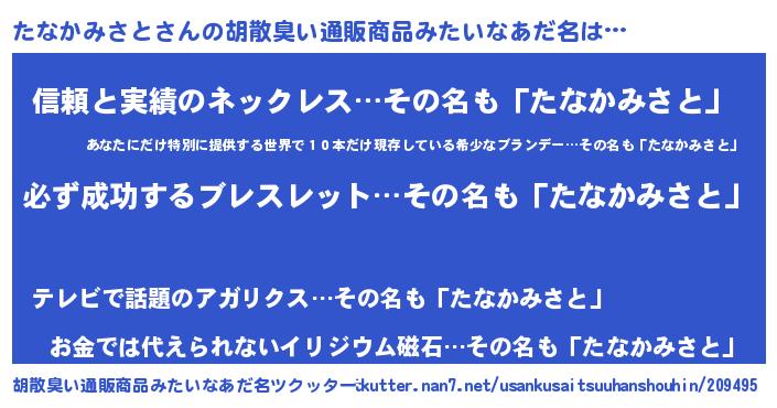 | ヒーロー風カッコイイあだ名 | 『スーパータナカミサト』『黄金騎士タナ』 |