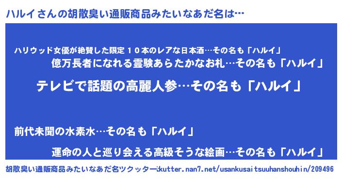 | ヘコむあだ名 | 『なまこ酢』『ハルっふぃ~』 |